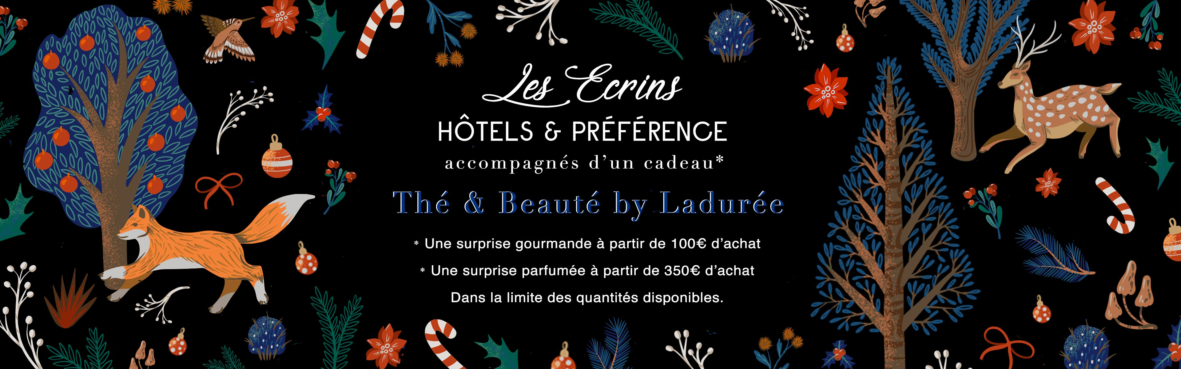 Cette féerie entraîne les voyageurs dans une promenade irrésistible qui se prolonge à la dégustation d’un thé enivrant Thé & Beauté by Ladurée, et à la diffusion d’un tendre sillage parfumé d’une bougie de la même marque, accompagnant cette année les coffrets cadeaux Hôtels & Préférence.