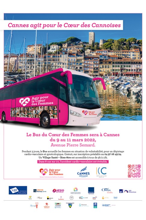En partenariat avec la Mairie de Cannes et les services de santés locaux, le Bus du Cœur des Femmes démarrera le 9 mars prochain son tour de France en 20 étapes, après une tournée en 2021 dans 5 villes.