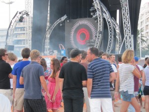Les derniers rayons du soleil sonnent le fameux gong du départ des festivités c’est, en maillots de bains, pieds nus, en sandales ou en baskets, avec ou sans t-shirt confectionnés pour l’occasion avec l’insigne « Plage Electronique », ou simplement habillé pour faire face à la libre expression du corps, que la fête commence….