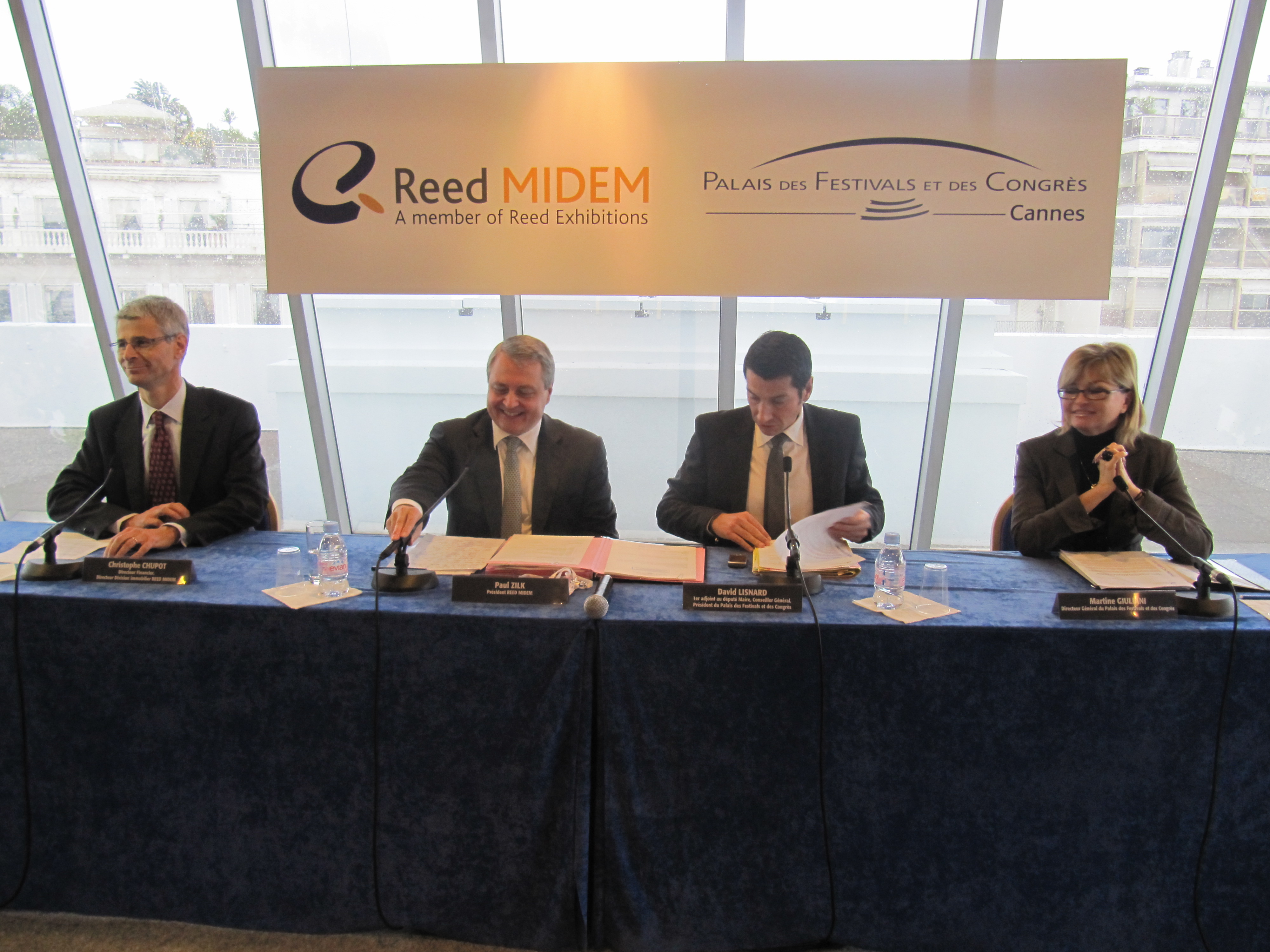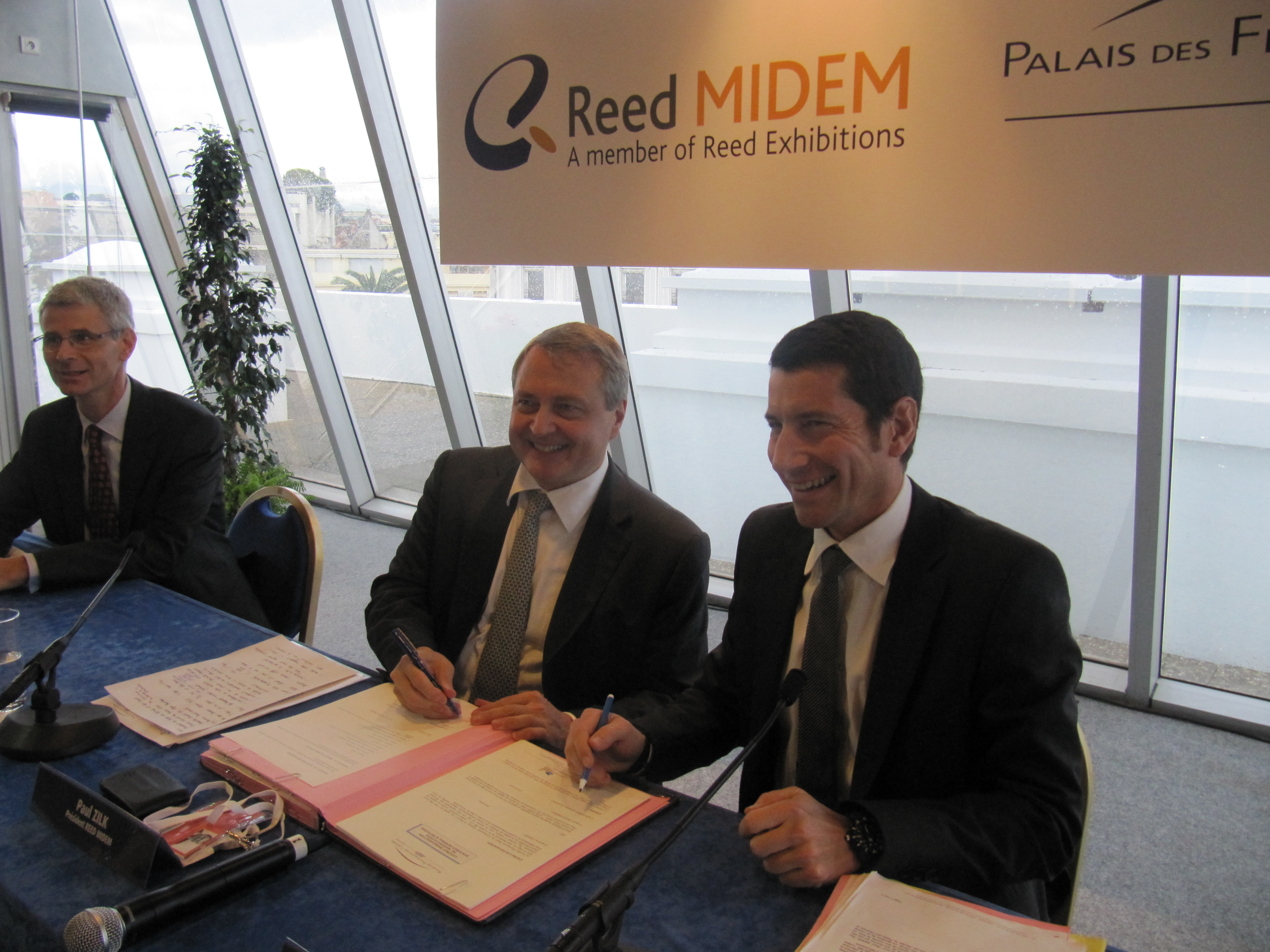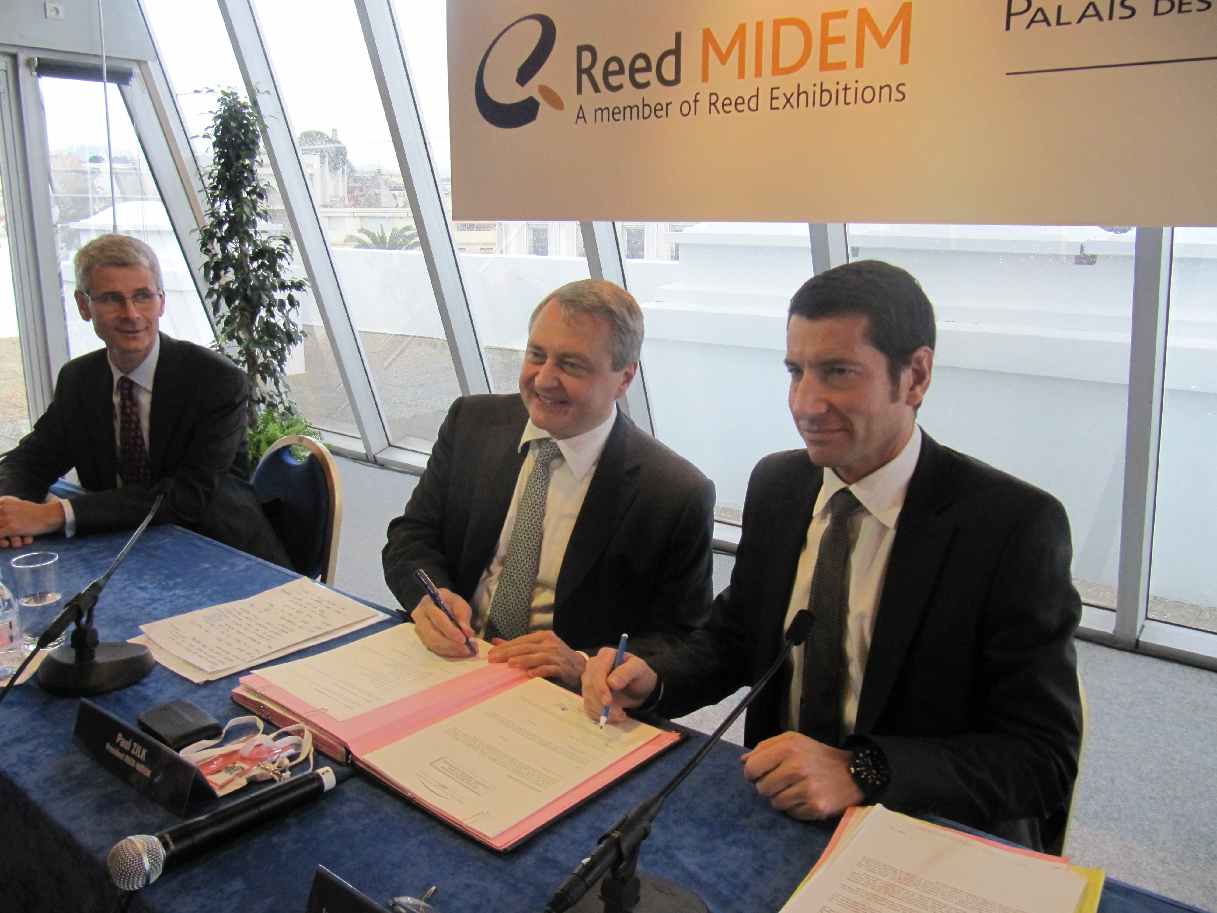 Ce jour, en présence de Paul ZILK Président Directeur Général Reed MIDEM, David LISNARD 1er Adjoint au Député-maire, Conseiller Général, Président du Palais des Festivals et des Congrès, Martine GIULIANI Directeur Général du Palais des Festivals et des Congrès, Christophe CHUPOT Directeur Financier, Directeur Division Immobilier Reed MIDEM, nous étions réunis pour célébrer le renouvellement d’un partenariat.
