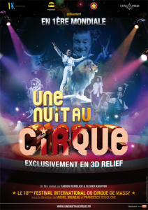 Une Nuit Au Cirque 3D, est la captation du 18ème Festival International du Cirque de Massy (sous la direction de Francesco Bouglione et Michel Bruneau). Les plus grands artistes du monde entier ont répondu présent et collaboré avec les réalisateurs de façon à ce que le spectacle soit optimisé pour la captation en 3D-Relief.