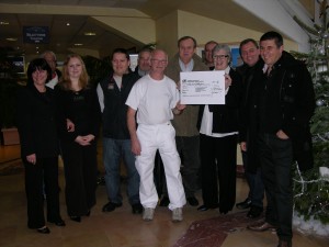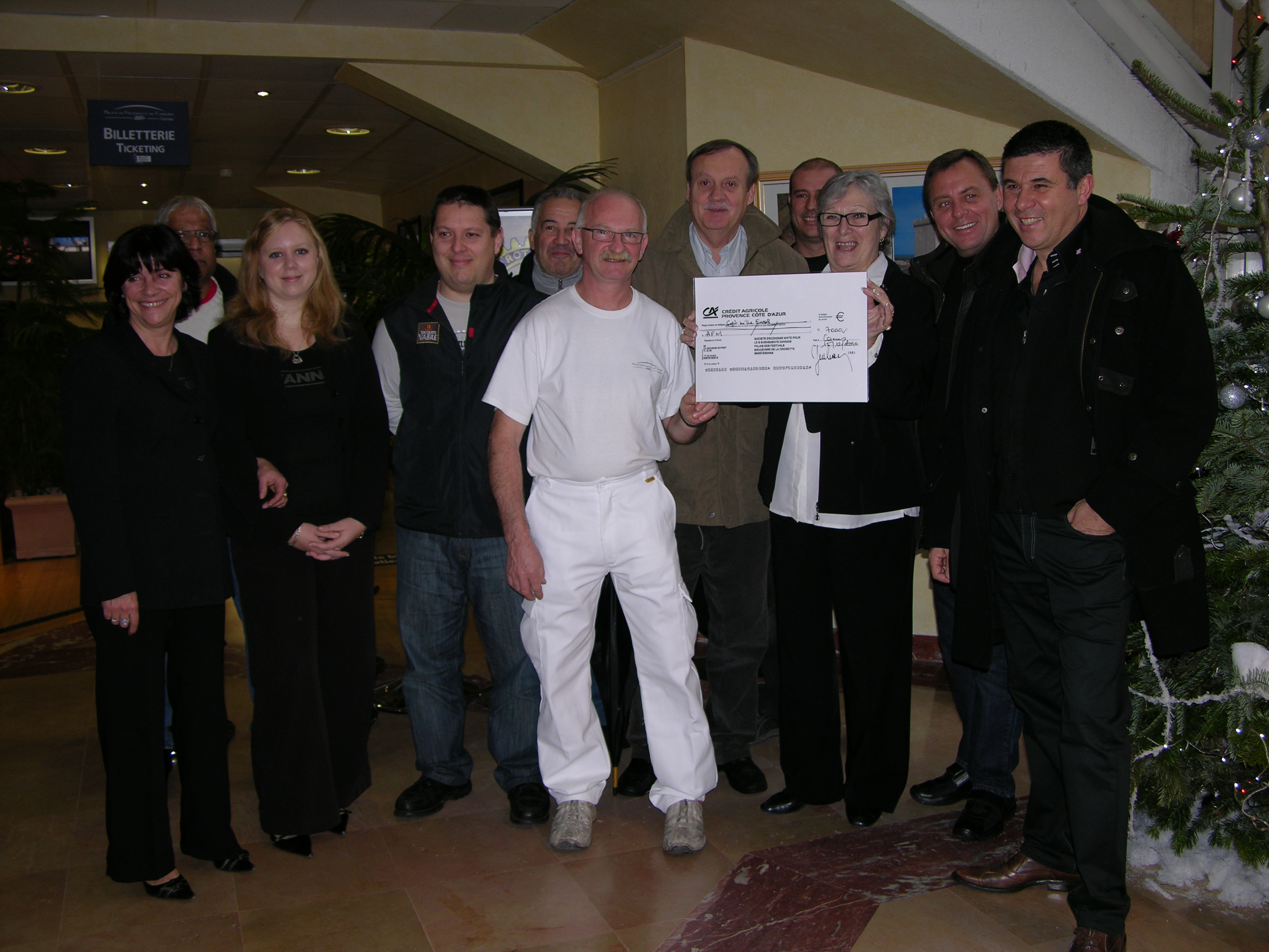 Cannes, le 23 décembre 2010, 11h00, Office du Tourisme de Cannes – Le personnel bénévole du Palais des Festivals et des Congrès remet à l’Association Française contre les Myopathies, un chèque de 7 000 euros.