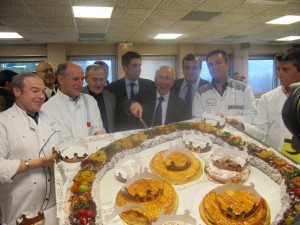 Monsieur Claude BATEL Président du Syndicat des Maîtres boulangers et boulangers pâtissiers des Alpes-Maritimes était venu avec des boulangers de la région (écouter l’interview de Claude BATEL, Ludovic REY et Philippe DOL) pour nous faire don de leurs bonnes galettes des rois artisanales, pour les unes fourrées avec une crème d’amande, pour les autres briochées aux fruits confits.