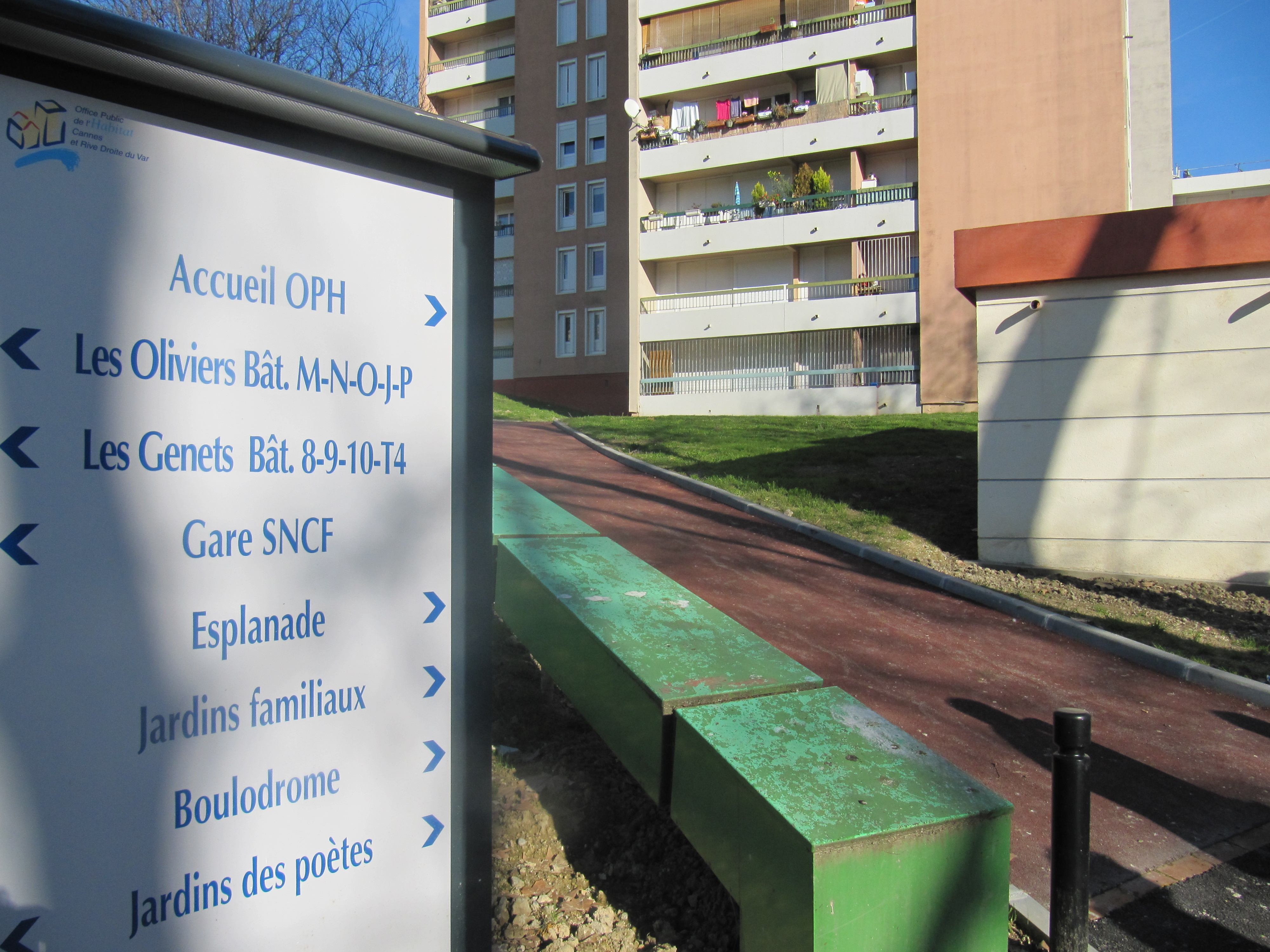 Ecoutons les explications des travaux de réhabilitation de l’eco-quartier coeur de RANGUIN à Cannes par Pascale VAILLANT Adjointe au Maire, déléguée à l’Environnement à la Qualité de la vie et à la protection du patrimoine naturel, Remy LERAY Directeur Général de l’Office Public de l’Habitat Cannes et Rive Droite du Var, et de Joël MARTINIERE Ingénieur-Technopole à la Mairie de Cannes .