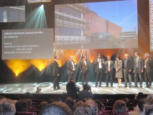 Le jury a récompensé huit projets immobiliers, sélectionnés au terme d’une compétition ayant recueilli une centaine de participations, issues de 27 pays allant de l’Allemagne au Japon en passant par la Turquie et l’Inde. Le choix du jury a notamment été guidé par des critères relatifs à l’infrastructure et l’accès en transport, l’intégration environnementale, l’originalité du concept, la qualité technique et architecturale ainsi que les services proposés. Parmi ces projets, lors de la cérémonie de clôture de l’évènement, la France a su se démarquer dans la catégorie Centres d’affaires, notamment avec « le Siège social Chèque Déjeuner sur le site de Carré 92 », Gennevilliers.