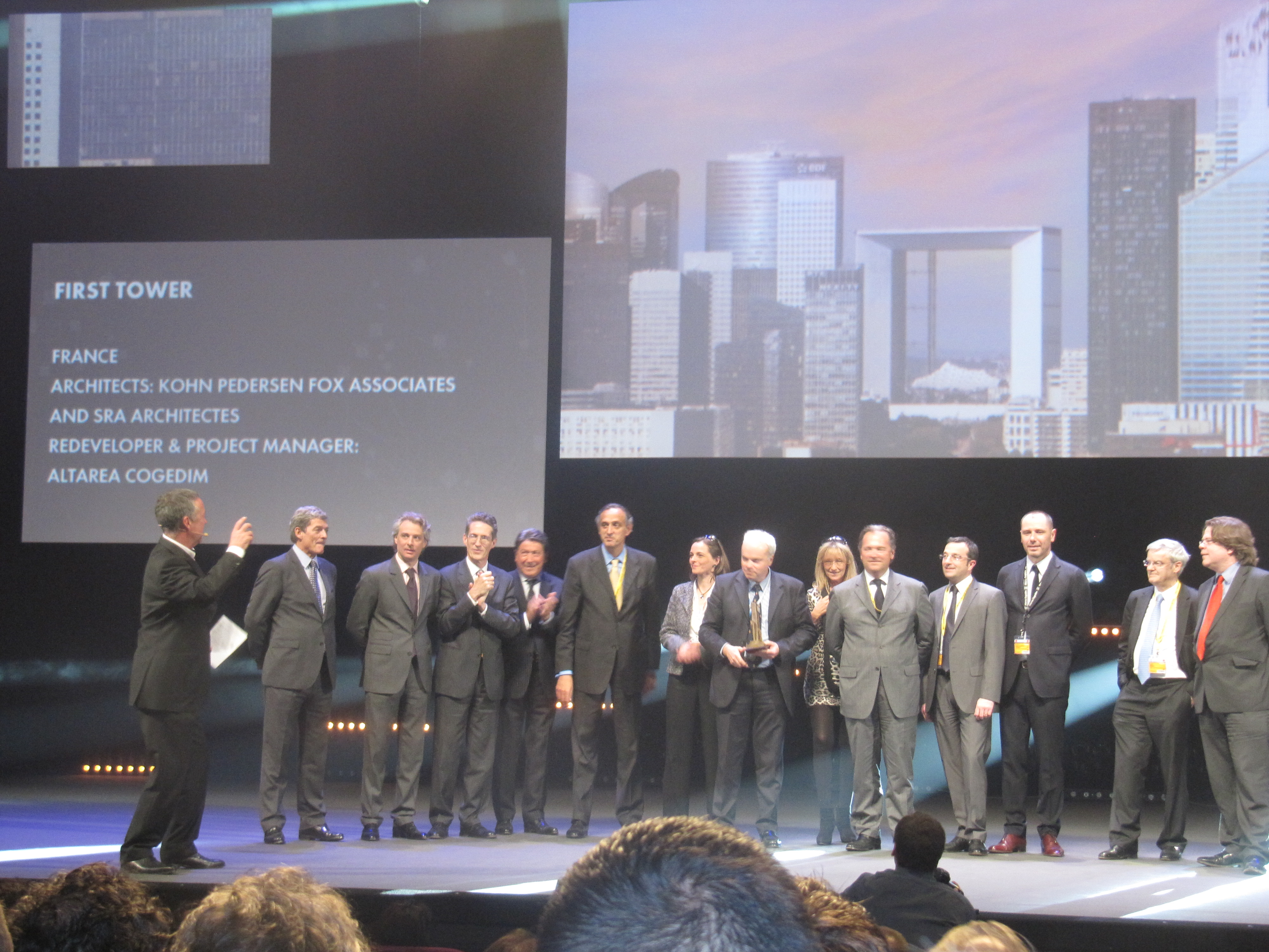 Commentant la sentence, le président A. Eugene Kohn de KPF a dit: «Nous sommes incroyablement fiers de la « Première Tour ». Ce prix est une affirmation de l’excellente relation que nous avons construit avec Altarea Cogedim-, AXA Reim et Beacon Capital Partners, et de notre dur travail, en collaboration avec SRA-Architectes, la création d’un bel immeuble et significative dans l’une des villes les plus importantes du monde. « Première Tour » est vraiment en avance sur son temps pour concevoir un nouveau bâtiment, et n’est pas simplement un nouvel ajout sur le Paris horizon. Nous avons eu une merveilleuse collaboration avec toutes les parties concernées. Les Grands bâtiments sont le résultat du travail d’équipe vraiment sympa. »