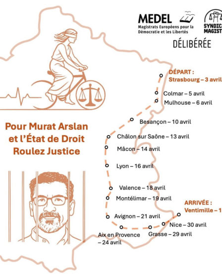 Roulez Justice ! De Strasbourg à Vintimille, des magistrat·es à vélo pour soutenir Murat Arslan et défendre l’État de droit…avril – mai 2026 Du 3 avril au 1er mai 2026, des magistrat·es, juristes et citoyen·nes parcourront la France à vélo sur près de 1 400 kilomètres, de Strasbourg à Vintimille. Baptisée « Roulez Justice », …
