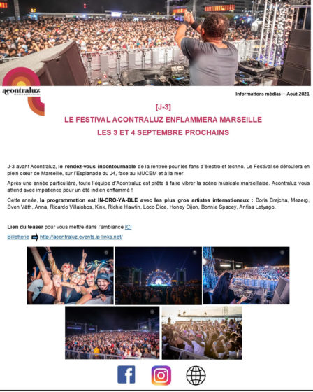 Actualités Art-Culture Internationales musiqueMARSEILLE : FESTIVAL ACONTRALUZ 2021… Billetterie http://acontraluz.events.ip-links.net